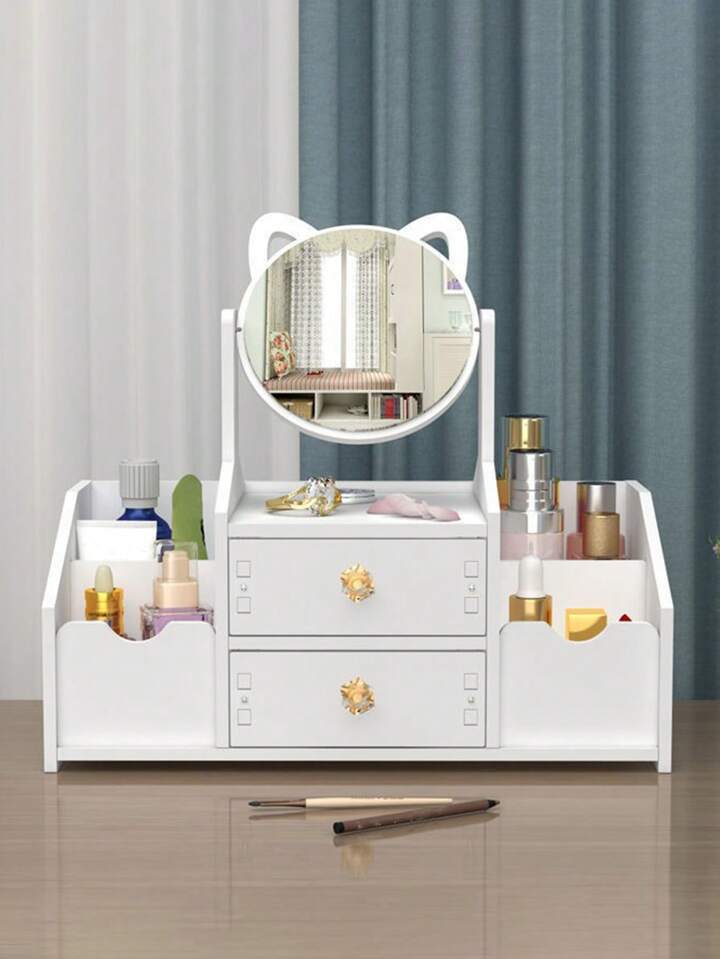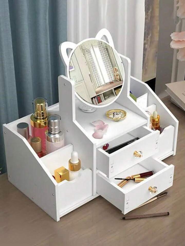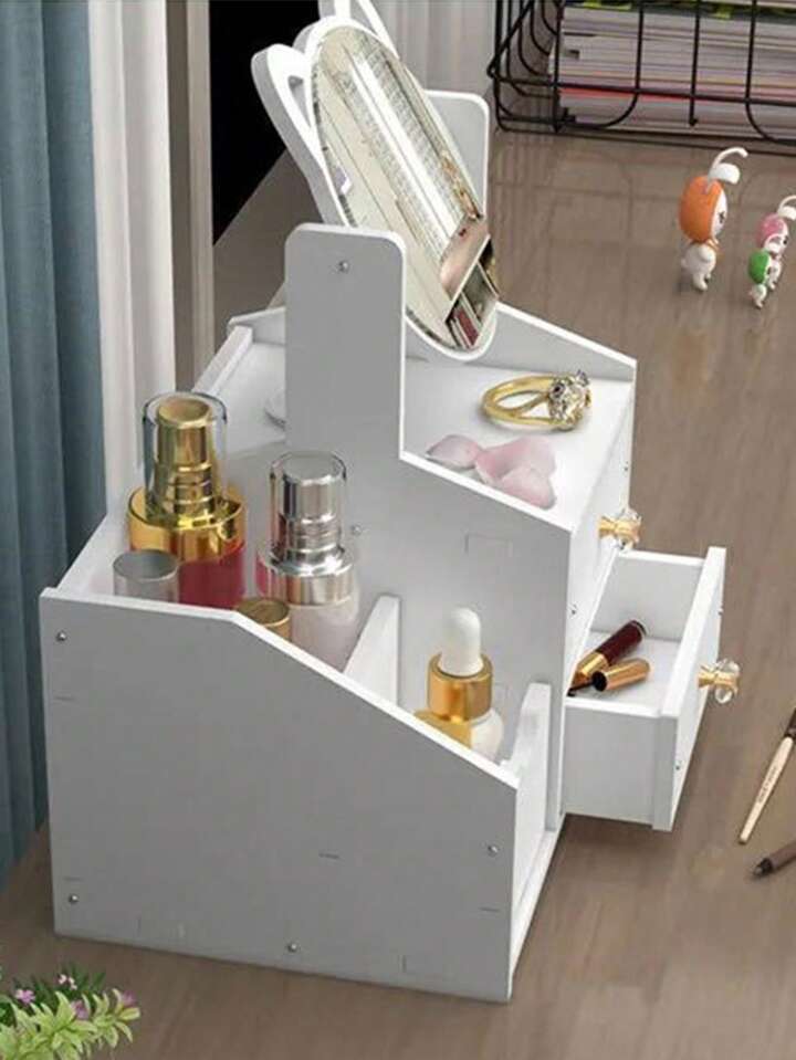 Praktičan i elegantan organizer za šminku sa ogledalom savršen je za sve ljubitelje urednosti i stila! Ovaj funkcionalni proizvod ima dve prostrane fioke za čuvanje šminke, nakita i kozmetike, dok više pregrada omogućava organizaciju četkica, ruževa, parfema i drugih beauty proizvoda.