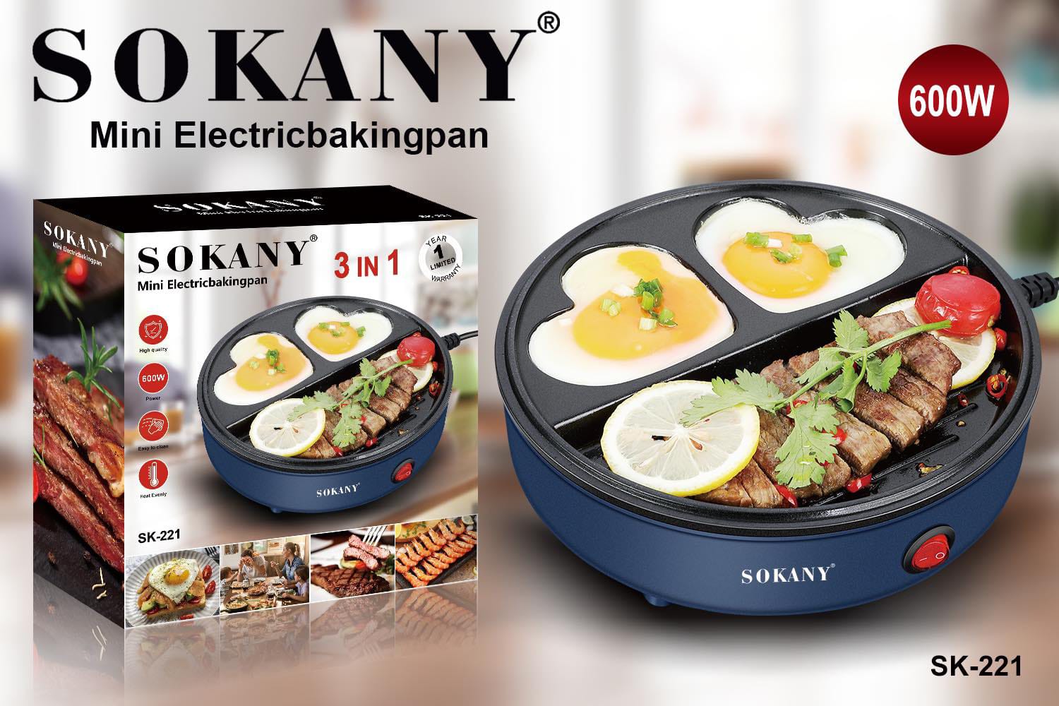 Mini električni gril tiganj - Sokany 3u1