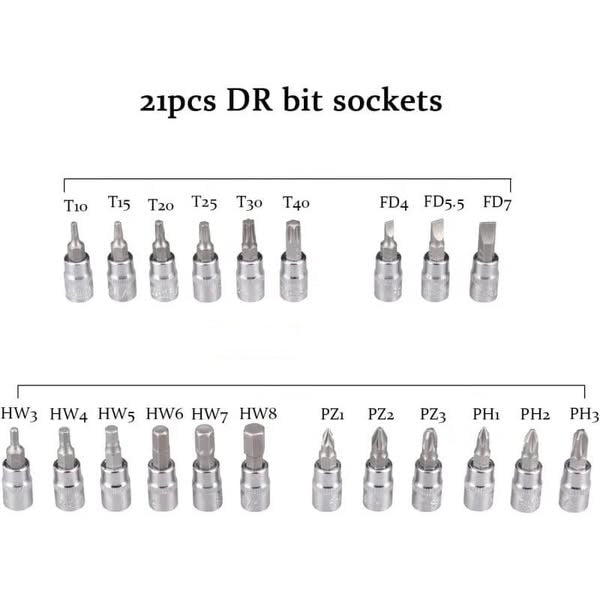 21 komad nasadnih bitova: Torx: T10, T15, T20, T25, T30, T40 , Phillips: PH1, PH2, PH3 , Slot: 4, 5.5, 6.5 mm ,