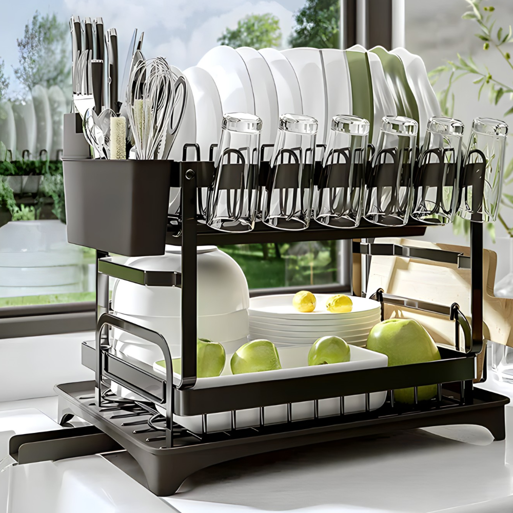 Uz naš kompaktni stalak za sušenje posuđa, sve ćete imati na jednom mestu – uredno složeno, brzo oceđeno i spremno za upotrebu. Radna površina ostaje čista i slobodna, bez haosa i improvizovanih “konstrukcija” od sudova.