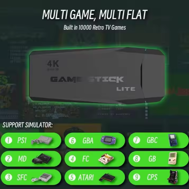 TV game stick konzola kombinuje nostalgiju, jednostavnost i ogroman broj legendarnih igrica. Savršena je za porodičnu zabavu, poklon ili opuštanje uz klasik igrice koje nikada ne izlaze iz mode.