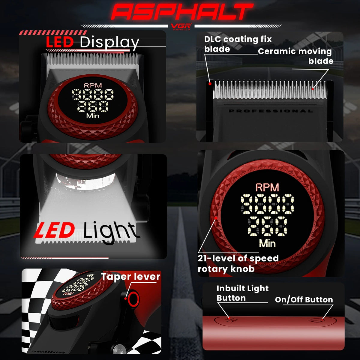 Mašina za šišanje VGR-001 opremljena je motorom visokih performansi sa brzinama u rasponu od 7.000 o/min (u koracima od 100 o/min). Tehnologija I otpor sečiva prilagođava brzinu motora za glatko podrezivanje.